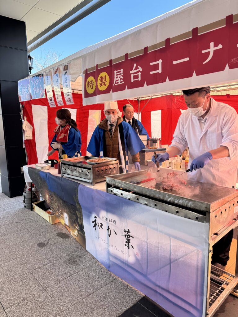 焼きそばやフランクフルト、豚汁などの屋台も大盛況。美味しいと評判でした。