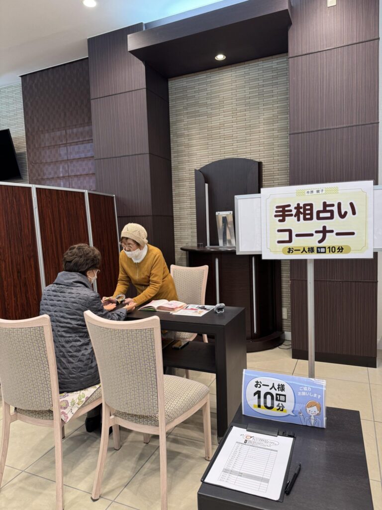 また、占い、ヤックス(千葉薬品)さんによる健康測定、SOUシニアケア看護師による認知症チェックなどの健康相談もあり、ご自身の健康についてなどじっくりお話を聞かれている方も多くいらっしゃいました。